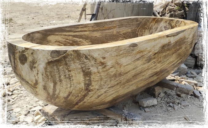 Petrified wood bathtub, fresh from production.